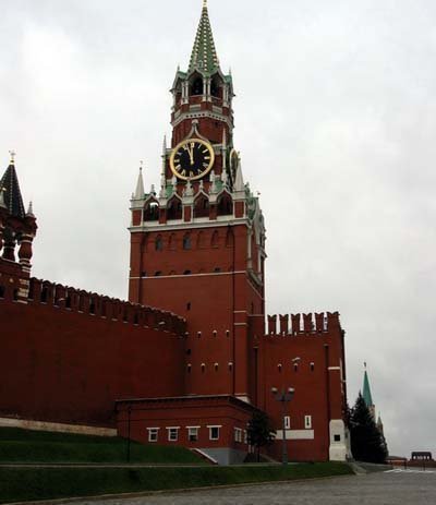 Tháp Spasskaya là tháp chính với một đoạn đi qua bức tường phía đông của điện Kremlin, nơi có thể nhìn toàn bộ Quảng trường Đỏ. Tháp Spasskaya do kiến trúc sư người Italy Pietro Antonio Solari xây dựng vào năm 1491. Theo một số tài liệu lịch sử, đồng hồ trên tháp Spasskaya xuất hiện vào khoảng năm 1491-1585. Nó thường được biết đến với cái tên đồng hồ Kremlin.