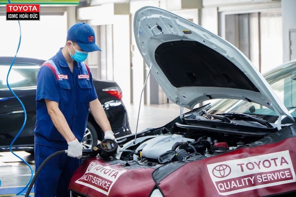 Toyota Hoài Đức cung cấp dịch vụ bảo dưỡng định kỳ cho tất cả các dòng xe Toyota theo tiêu chuẩn của nhà sản xuất. Với hệ thống trang thiết bị máy móc hiện đại, đồng bộ, ngoài dịch vụ sửa chữa chung, đại lý cung cấp đến khách hàng dịch vụ bảo dưỡng EM. Đây là dịch vụ bảo dưỡng nhanh giúp khách hàng rút ngắn thời gian chờ đợi, từ khâu báo giá đến khi nhận xe chỉ kéo dài 60 phút mà vẫn đảm bảo chất lượng theo tiêu chuẩn Toyota.