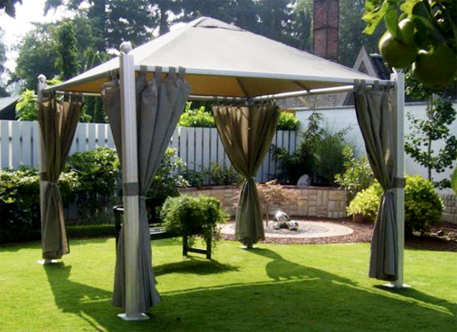 Vị trí và hình thái kiến trúc của nhà chòi sắt hợp lý sẽ làm tăng thêm sự hứng khởi cho người sử dụng. Thiết kế nhà chòi sắt được trang trí rèm cửa và đèn chiếu sáng ngoài trời trông thật quyến rũ. Những bồn hoa càng tăng thêm tính thẩm mỹ cho nhà chòi sắt và những chi tiết này sẽ cải thiện cảnh quan xung quanh một cách đáng kể.