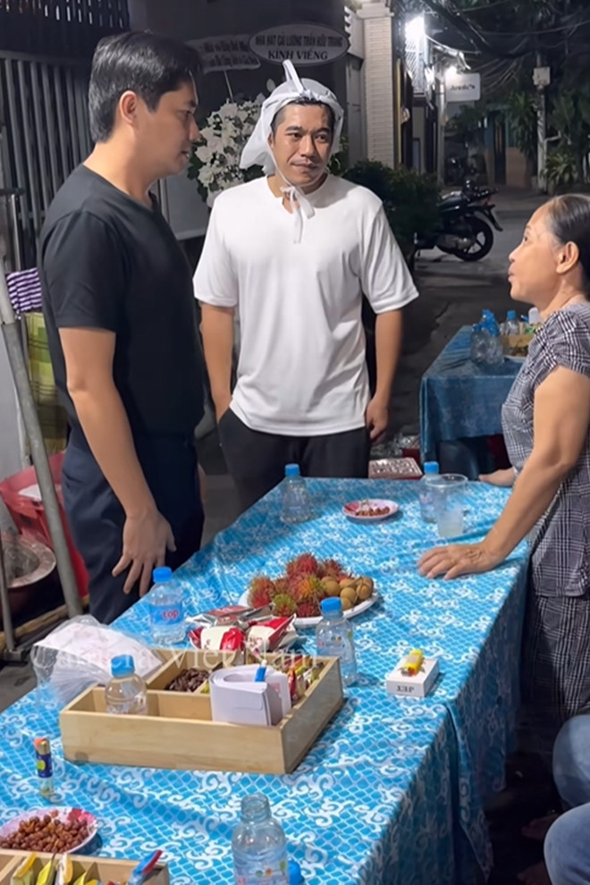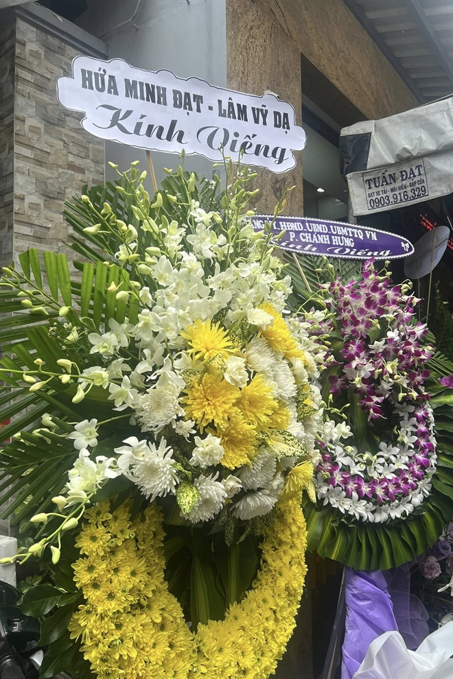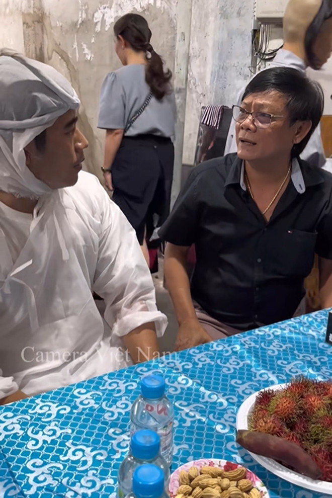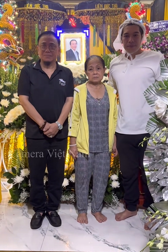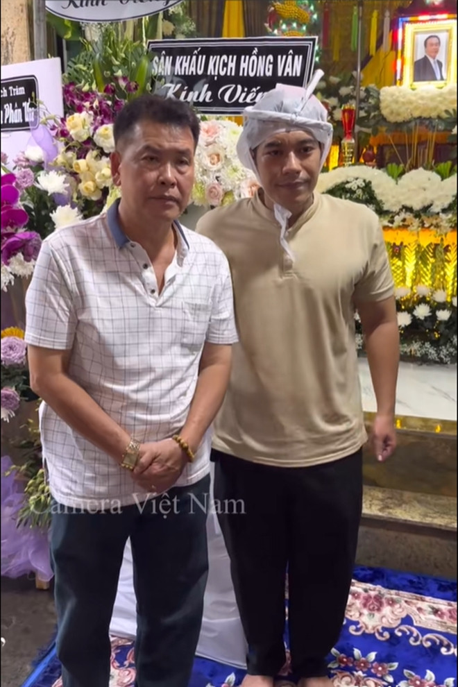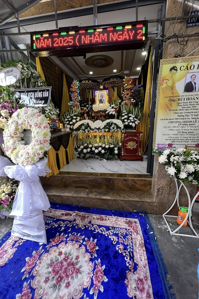 Nghệ sĩ Bùi Công Danh - con trai nghệ sĩ Công Tài - luôn có mặt bên cạnh linh cữu cha, đón tiếp từng đoàn khách đến viếng. Dù mệt mỏi sau nhiều ngày chăm sóc cha bệnh, anh vẫn cố gắng giữ bình tĩnh để hoàn thành trọn vẹn những nghi thức cuối cùng.