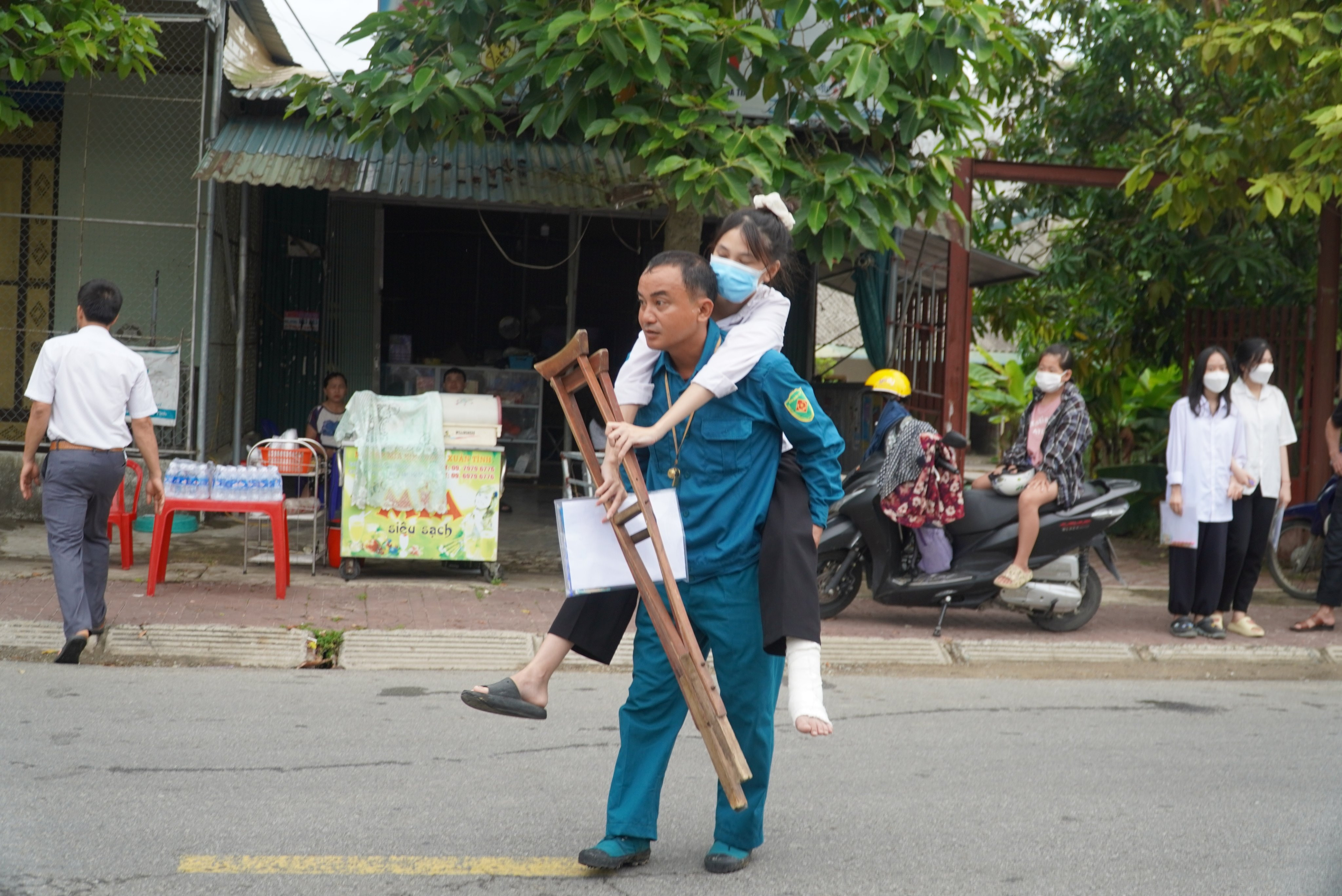 Một tuần nay, ông Lý đã hỗ trợ con gái đến trường ôn thi.