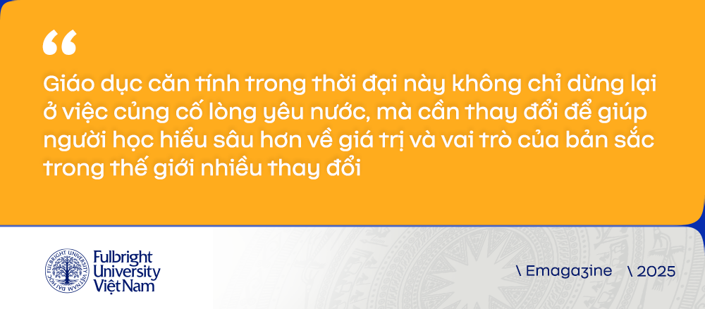 Thay đổi đầu tiên cần đến từ cách nhìn. Nếu trước đây, việc giáo dục bản sắc thường nhấn mạnh ‘cái chung’ của dân tộc, thì nay, nó cần mở rộng để tôn trọng ‘cái riêng’ của từng cá nhân - mỗi người là một cách biểu đạt khác nhau của căn tính Việt. Giáo dục vì thế phải khuyến khích đối thoại, phản tư, và sáng tạo - giúp học sinh ‘hiểu’ Việt Nam bằng chính trải nghiệm sống của mình, chứ không chỉ qua sách vở”, TS. Nguyễn Nam nhấn mạnh.