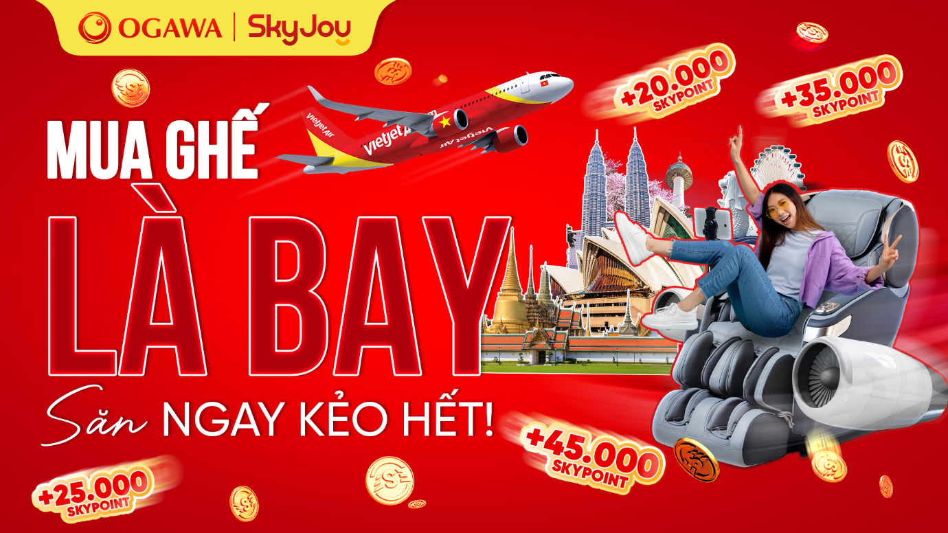 Cụ thể, khi mua ghế massage Ogawa, khách hàng sẽ được nhận điểm Fixed Point (vé thưởng đặc biệt dành riêng Hội viên Vietjet SkyJoy) tương ứng trên ứng dụng SkyJoy. Điều này sẽ giúp khách hàng dễ dàng đổi điểm thưởng từ Ogawa Vietnam thành vé máy bay của Vietjet Air với mức chi phí tiết kiệm lên đến 70%, kể cả trong các dịp cao điểm như cuối tuần, ngày lễ, Tết, mùa du lịch,... Hoặc khách hàng cũng có thể mua sắm hoặc đổi những ưu đãi từ các dịch vụ khác trên ứng dụng SkyJoy.