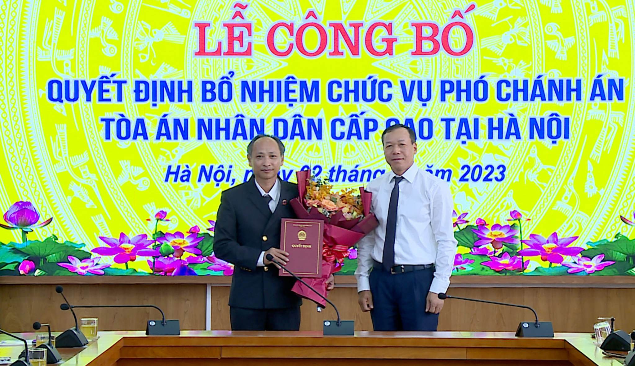 Tại buổi lễ, bà Đào Tú Hoa, Phó Vụ trưởng Vụ Tổ chức - Cán bộ (TAND Tối cao) đã công bố quyết định số 688/QĐ-TANDTC của Chánh án TAND Tối cao về việc bổ nhiệm ông Phạm Văn Nam (SN 1966), Thẩm phán cao cấp, Chánh án TAND tỉnh Điện Biên giữ chức Phó Chánh án TAND Cấp cao tại Hà Nội.