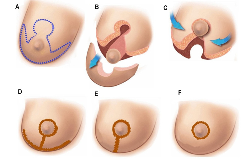 Nhờ thiết kế vạt tỉ mỉ chính xác, giữ được cuống mạch cấp máu chính xác, các bác sĩ có thể di chuyển núm vú bằng con đường an toàn nhất, sau đó cắt đi tổ chức tuyến thừa và khâu lại chỉ với một đường sẹo vòng quanh phức hợp quầng núm vú mới.