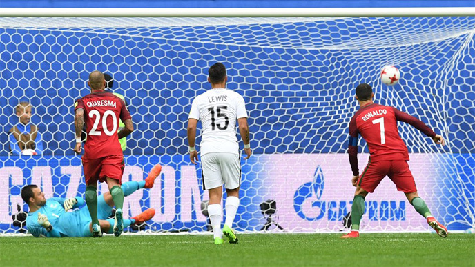 Bàn thắng của Ronaldo trên chấm 11m đã góp phần vào thắng lợi tuyệt đối với tỷ số 4-0 của Bồ Đào Nha trước New Zealand ở Confederations Cup 2017.