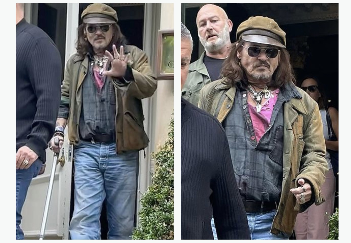 Tuần trước, xuất hiện hình ảnh Johnny Depp chống gậy rời khách sạn ở Glashow để đến buổi biểu diễn cùng với các thành viên Vince Furnier, Tommy Henriksen và Joe Perry của ban nhạc The Hollywood Vampires.