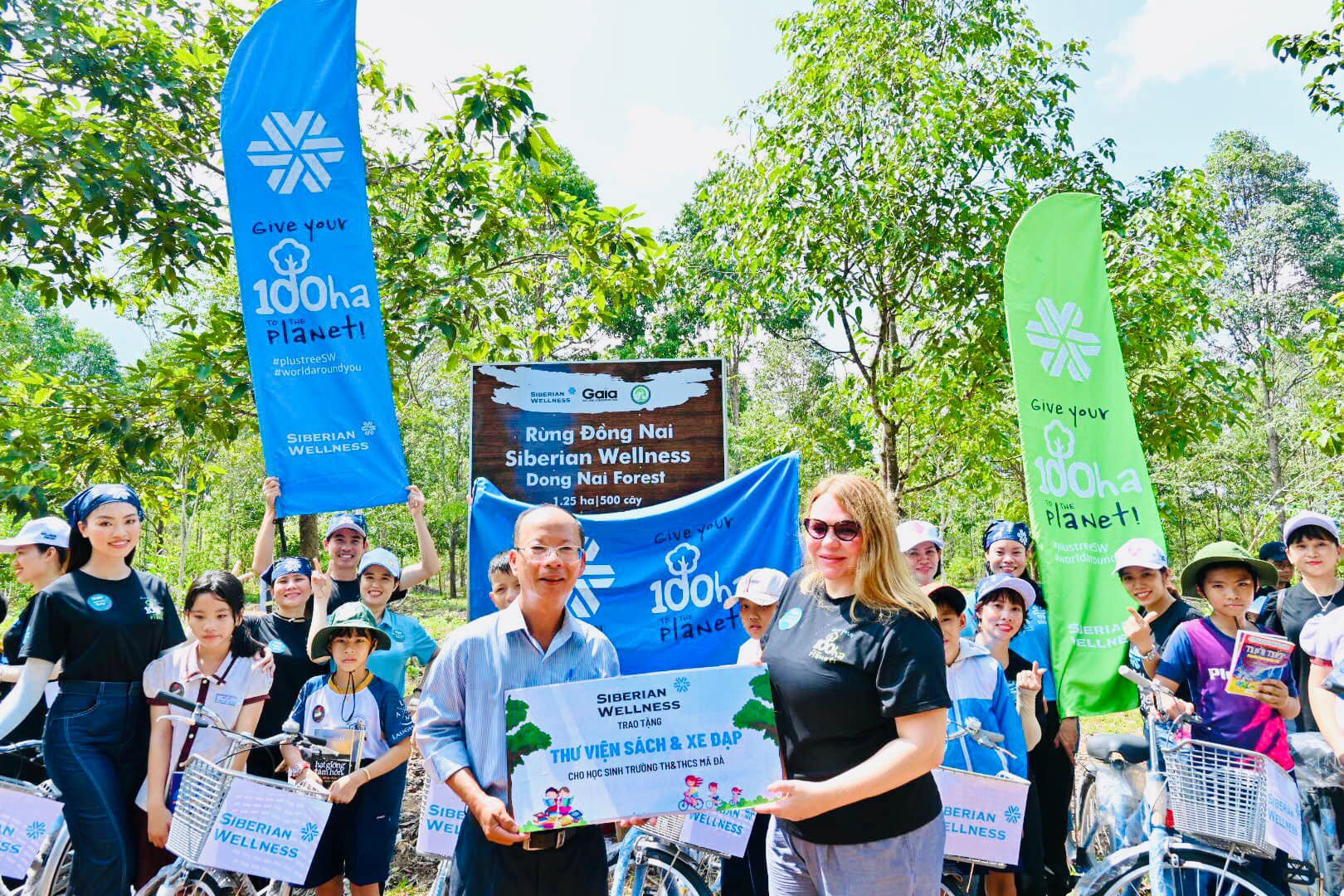 Chiến dịch Eco Project năm nay của Siberian Wellness không chỉ gói gọn ở việc trồng cây, mà đại diện nhãn hàng còn tham gia trao tặng thư viện sách tới trường THCS huyện Vĩnh Cửu, tỉnh Đồng Nai và 30 chiếc xe đạp cho các em học sinh nghèo hiếu học trên địa bàn tỉnh. Đây là những hoạt động thiết thực góp phần phát triển giáo dục tại những nơi Siberian Wellness có mặt đồng thời khích lệ tinh thần vượt khó của các em trên con trên con đường khám phá tri thức.