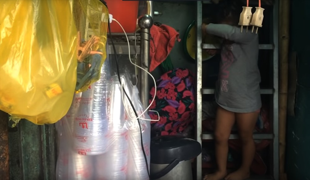 Đồ đạc trong nhà lỉnh kỉnh, chen chúc nhau trong căn nhà 1m2 này. |