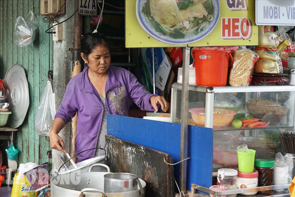 Công việc hàng ngày của bà Vân là bán hủ tiếu, bán nước để kiếm sống qua ngày. Chiếc tủ đồ hàng quán có bề ngang rộng hơn cả căn nhà của bà. |