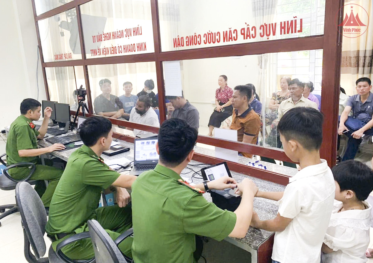 Công an huyện Sông Lô làm thủ tục cấp căn cước cho trẻ em.