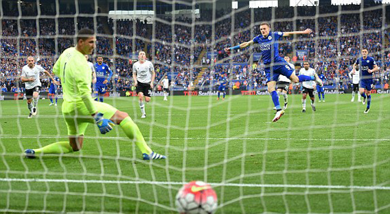 Niềm hưng phấn cao độ giúp đoàn quân HLV Ranieri nhanh chóng có bàn mở tỉ số sớm. Andy King tung đường chuyền dọn cỗ để Vardy lao vào cắt mặt dứt điểm tung lưới Everton.