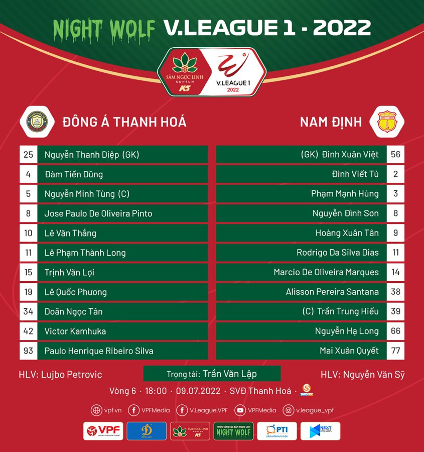 Đội hình ra sân Thanh Hóa vs Nam Định