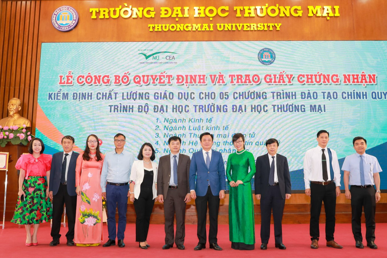 Cụ thể, 5 chương trình đào tạo của Trường ĐH Thương mại đã được Trung tâm Kiểm định chất lượng giáo dục - ĐH Quốc gia Hà Nội quyết định cấp giấy chứng nhận công nhận gồm: Chương trình đào tạo chính quy trình độ đại học ngành Kinh tế, ngành Luật kinh tế, ngành Thương mại điện tử, ngành Hệ thống thông tin quản lý, ngành Quản trị nhân lực; với tỷ lệ các tiêu chí đạt yêu cầu là 88%.