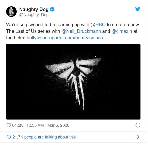Một phiên bản phim truyền hình chuyển thể từ trò chơi hành động hậu tận thế được đánh giá cao của Naughty Dog, The Last of Us, hiện đang được thực hiện tại HBO. Việc chuyển thể, dự định sẽ là một series nhiều tập, sẽ được dẫn dắt bởi nhà sáng tạo của Chernobyl là Craig Mazin, với đạo diễn trò chơi Neil Druckmann giúp cho phần viết kịch bản và điều hành sản xuất bộ phim.