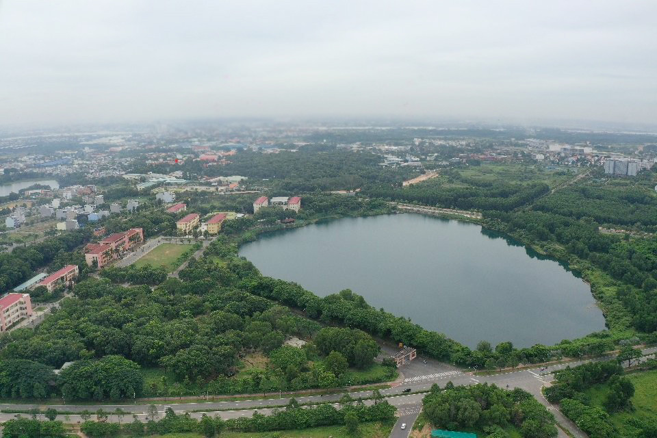 Với quy mô hơn 600ha, nơi đây đang được xem là “lá phổi xanh” hiếm hoi của TP.HCM và TP. Dĩ An. Nhìn từ trên cao, khu vực này rợp màu xanh của cây, xen cài những hồ nước lớn. Đây chính là yếu tố tạo nên chất lượng cho môi trường sống tại khu vực làng đại học.
