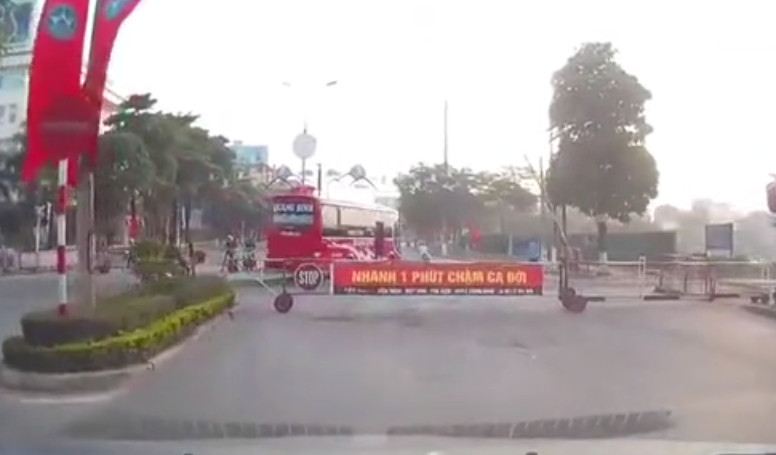 Dù rào chắn đã được kéo ra để ngăn phương tiện, tài xế nhà xe Quang Sinh vẫn cố tình đánh lái sang phần đường ngược chiều và băng qua đường ray.