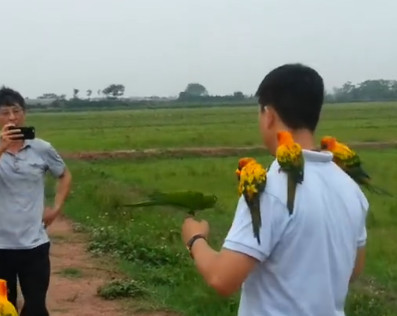 Những con vẹt đắt tiền, được chủ nhân chăm bẵm từ lúc mới nở cho đến khi đủ lông đủ cánh, thì mang ra cánh đồng thả.