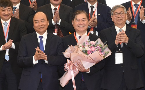 Thủ tướng Nguyễn Xuân Phúc tặng hoa cho ông Phan Xuân Dũng, Chủ tịch Liên hiệp các Hội Khoa học và Kỹ thuật Việt Nam khóa VIII. Ảnh: VGP/Quang Hiếu |