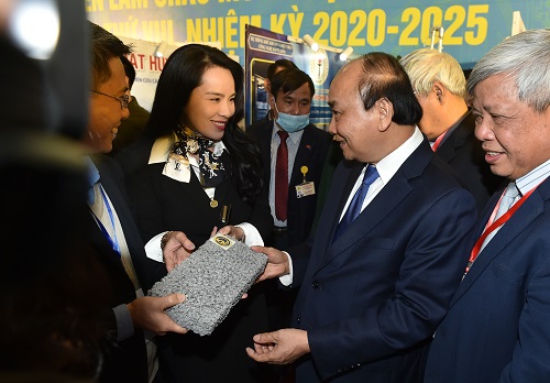 Bên lề Đại hội, Thủ tướng Nguyễn Xuân Phúc đã tham quan các gian hàng giới thiệu sản phẩm công nghệ và vật liệu tiên tiến tại triển lãm khoa học công nghệ.