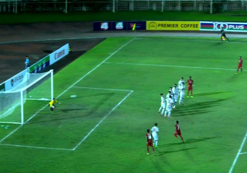 Sỹ Hoàng phạm lỗi ở vị trí rất nguy hiểm, ngay sát vạch 16m50. Myat Kaung Khant sút phạt rất nhanh, gỡ hoà 1-1.