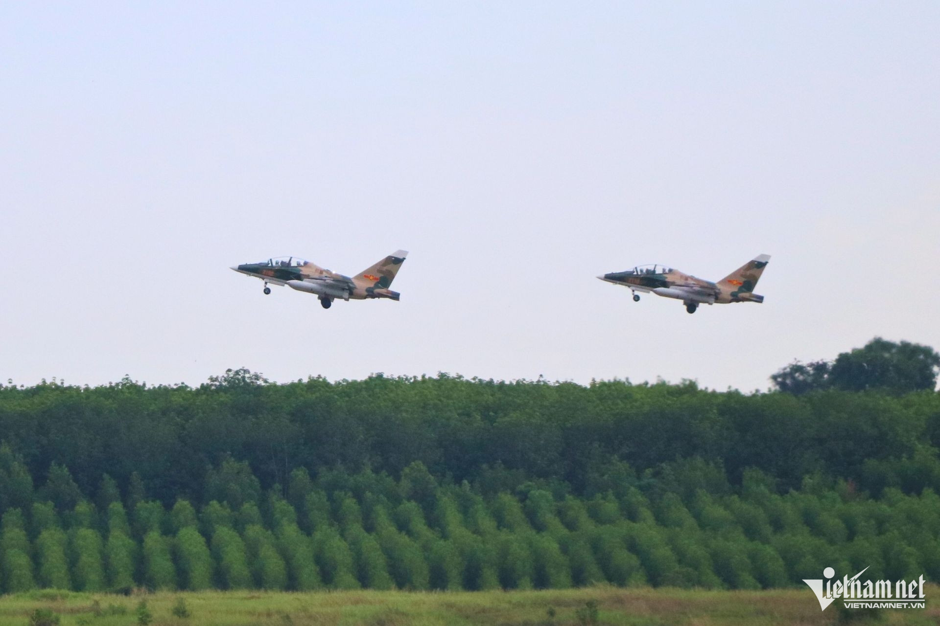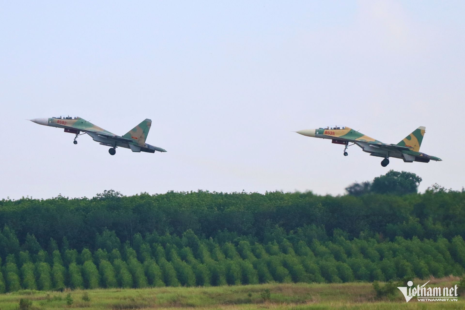 Đến khoảng 7h, đội hình gồm 5 chiếc Su-30MK2 và 8 chiếc Yak-130 bắt đầu di chuyển ra đường băng, lần lượt cất cánh bay chuyển sân về sân bay Phù Cát (Bình Định) và sân bay Kép (Bắc Giang).