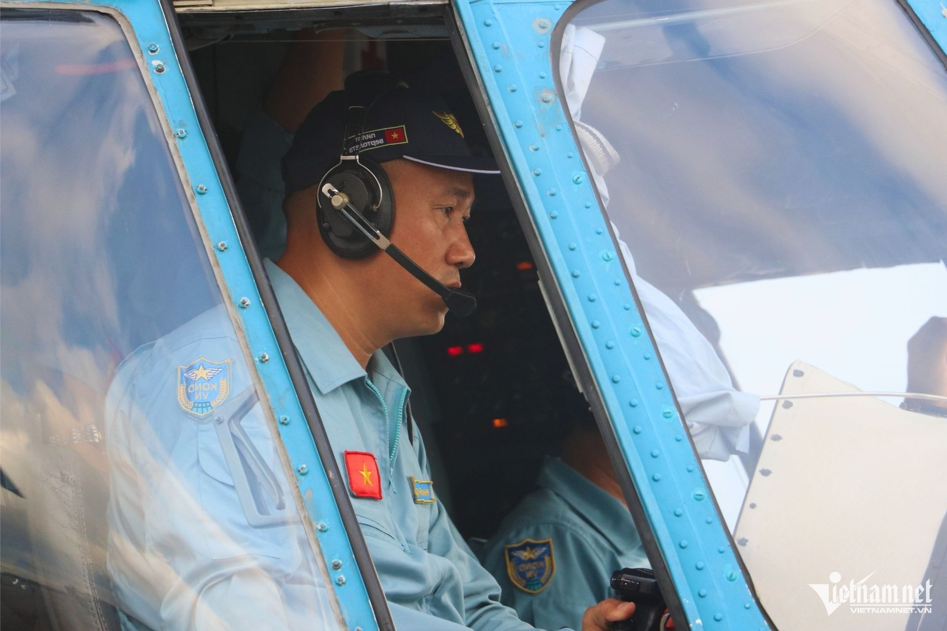 Tại bãi đỗ trực thăng, các kỹ thuật viên mặt đất kiểm tra lại toàn bộ hệ thống kỹ thuật, nạp điện, rà soát các thông số vận hành trước khi hoàn tất các bước cuối cùng để chuẩn bị cho trực thăng cất cánh.