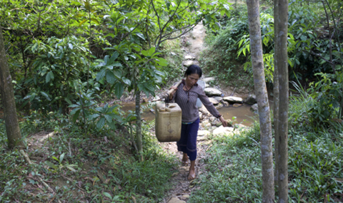 Nồi nước được đó có màu vàng vàng và mùi hơi hôi. Lau rửa cho con xong, chị dùng chỗ nước ấym chắt chiu tưới cho mấy gốc bí trước nhà. Mỗi gốc một ca nhỏ. Xong xuôi, chị vào bếp lấy hai chiếc xô và can nhựa tất tả vượt hơn 1km tới một khe suối nhỏ, nước màu vàng đục. Quãng đường quá dài cho 4 lần lấy nước mỗi ngày.