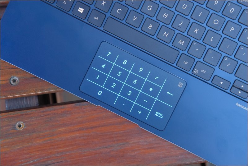 ZenBook 13 là sản phẩm đầu tiên trang bị màn hình NanoEdge siêu mỏng 4 cạnh, đạt diện tích hiển thị đến 95%, mặt lưng máy vẫn dùng họa tiết vòng tròn đồng tâm riêng biệt của Asus. ZenBook 13 còn tích hợp NumberPad, đây là một bàn phím số ảo ngay trên bàn di chuột.