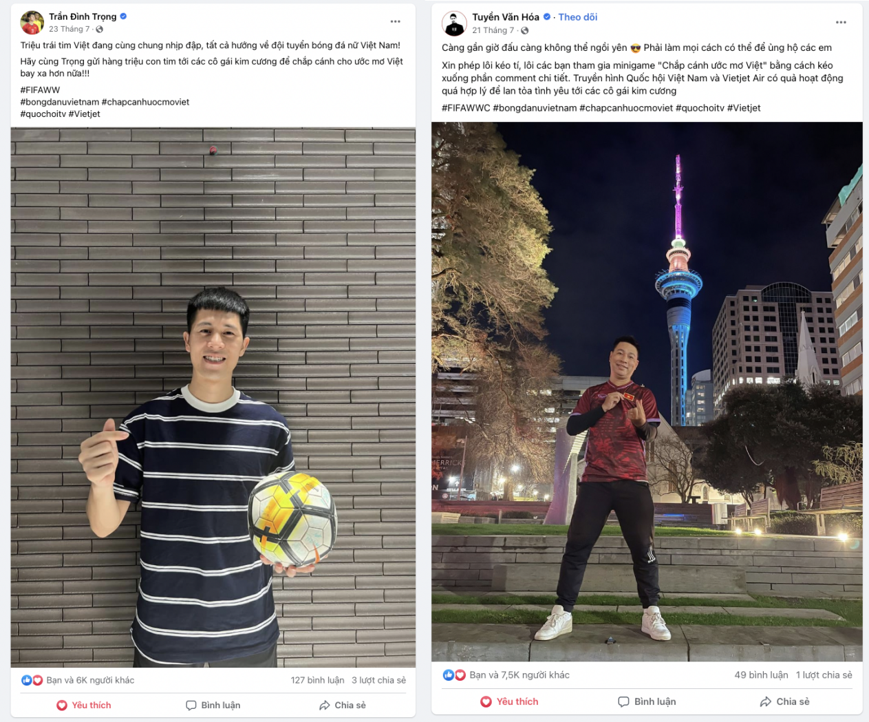 Điểm đặc biệt trong suốt chiến dịch là sự tham gia của một số người có sức ảnh hưởng, góp phần lan tỏa thông điệp, gia tăng sự mến mộ đến các nữ cầu thủ. Trung vệ Trần Đình Trọng - Đội tuyển bóng đá quốc gia Việt Nam chia sẻ hình ảnh “thả tim" trên Facebook cá nhân với lời chia sẻ: “Triệu trái tim Việt đang cùng chung nhịp đập, tất cả hướng về đội tuyển bóng đá nữ Việt Nam! Hãy cùng Trọng gửi hàng triệu con tim tới các cô gái kim cương để chắp cánh cho ước mơ Việt bay xa hơn nữa!!!”.