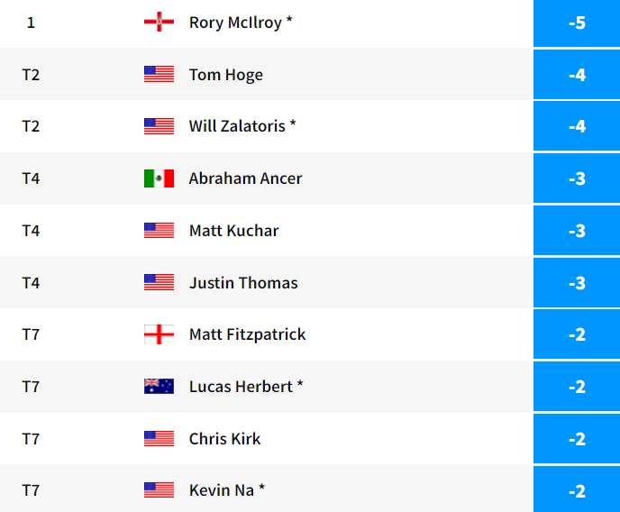 Đứng ngay sau McIlroy là Tom Hoge và Will Zalatoris - những người đánh 66 gậy ở vòng đầu tiên (-4).