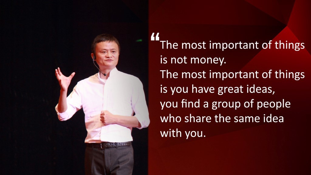 Thứ quan trọng nhất không phải là tiền. Thứ quan trọng nhất là bạn có những ý tưởng tốt, bạn tìm được những người có cùng ý tưởng với bạn.