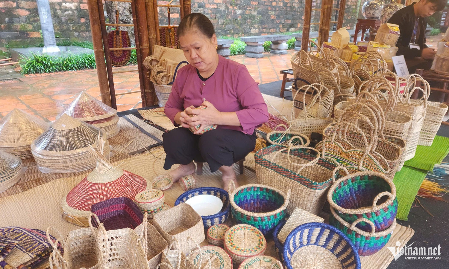 Nghệ nhân Đỗ Thị Ngân, đại diện làng nghề thêu ren Văn Lâm (Ninh Bình) chia sẻ vinh dự và phấn khởi khi được góp mặt trong sự kiện.
