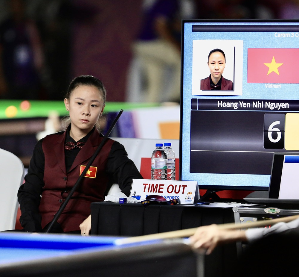 Nguyễn Hoàng Yến Nhi vượt qua cơ thủ người Thái Lan Jaisuekul 25-10 ở bán kết để đối đầu Sruong Pheavy - "nữ hoàng billiards" Campuchia ở chung kết.