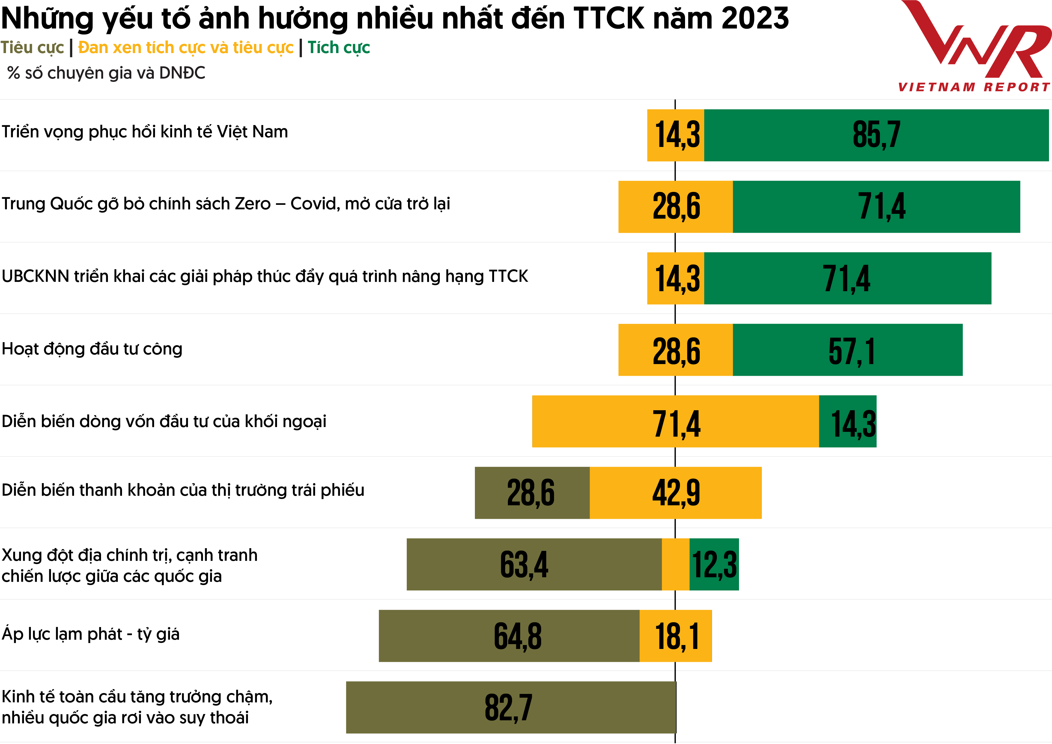 Một số yếu tố có thể gây ra những tác động lớn trên TTCK Việt Nam trong năm nay bao gồm: Triển vọng phục hồi kinh tế Việt Nam; Trung Quốc gỡ bỏ chính sách Zero - Covid, mở cửa trở lại; Đẩy mạnh chương trình phục hồi và đầu tư công; Diến biến dòng vốn đầu tư của khối ngoại; Diễn biến thanh khoản trên thị trường trái phiếu…