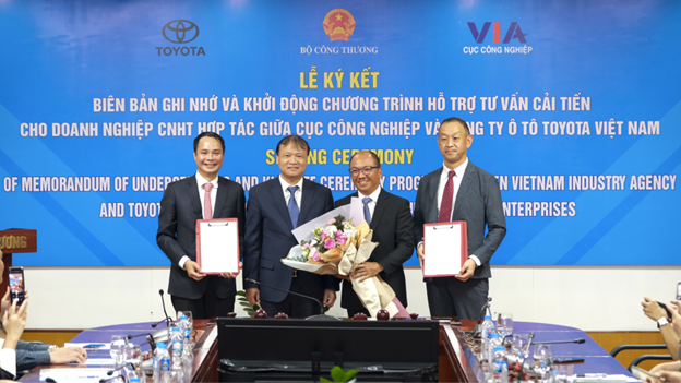 Vào tháng 7/2023, Toyota Việt Nam và Cục Công Nghiệp - Bộ Công Thương đã ký kết Biên bản ghi nhớ Dự án Hợp tác hỗ trợ doanh nghiệp trong nước trong lĩnh vực công nghiệp hỗ trợ ô tô nhằm nâng cao năng lực và tăng cường liên kết giữa doanh nghiệp hỗ trợ trong nước với các nhà lắp ráp ô tô giai đoạn 2023 - 2024.