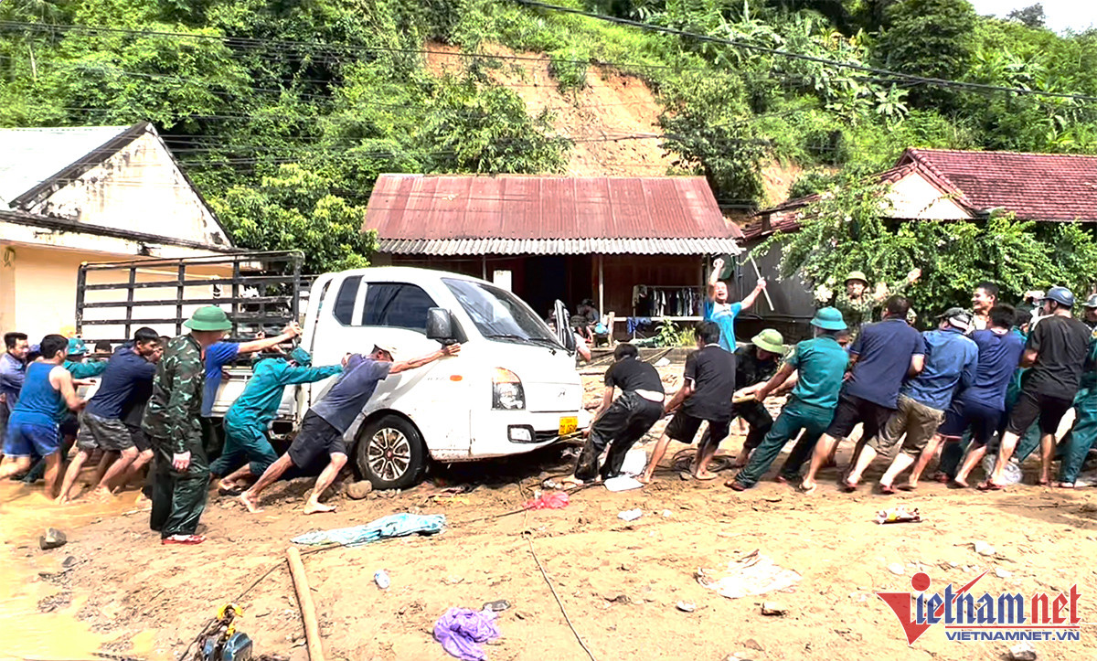 Một số hình ảnh giải cứu chiếc ô tô tại nơi lũ ống, lũ quét kinh hoàng:
