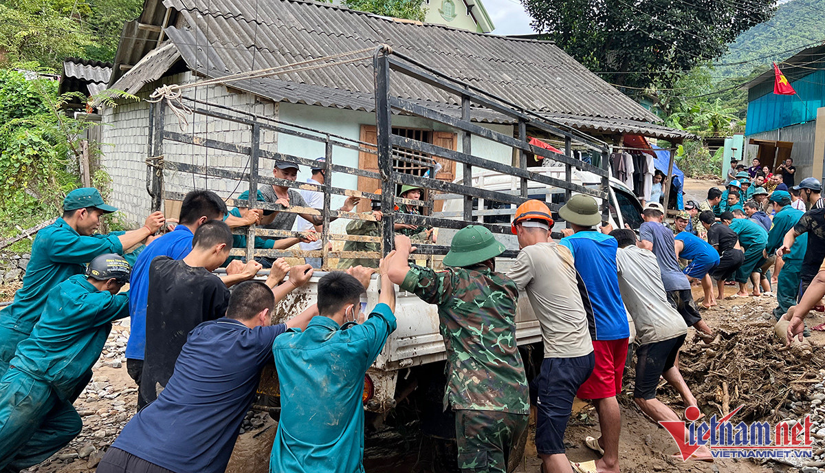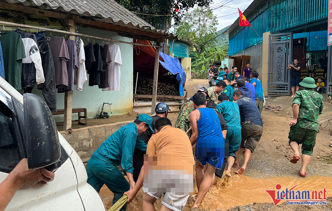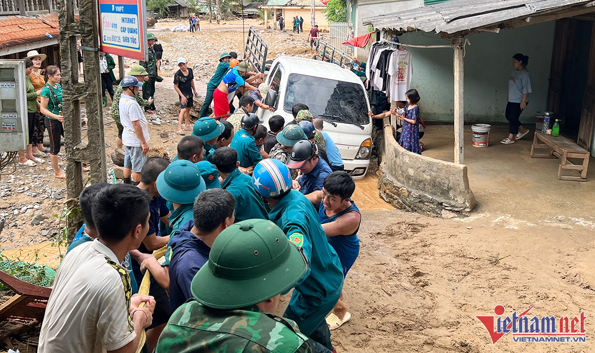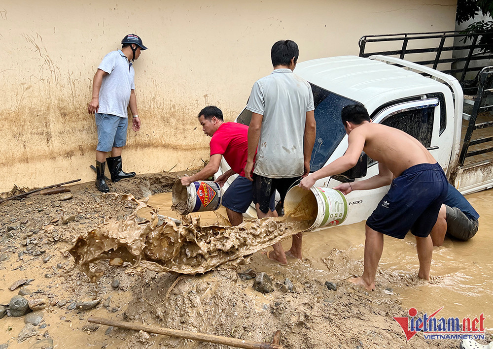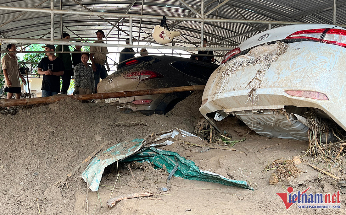 Trận lũ ống, lũ quét lần này đã nhấn chìm ít nhất 10 ô tô, hàng trăm xe máy và nhiều xe đạp đang nằm dưới lòng đất. Có những chiếc xe bắt đầu được người dân đào bới từ độ sâu hơn 1m, lấm đầy bùn.