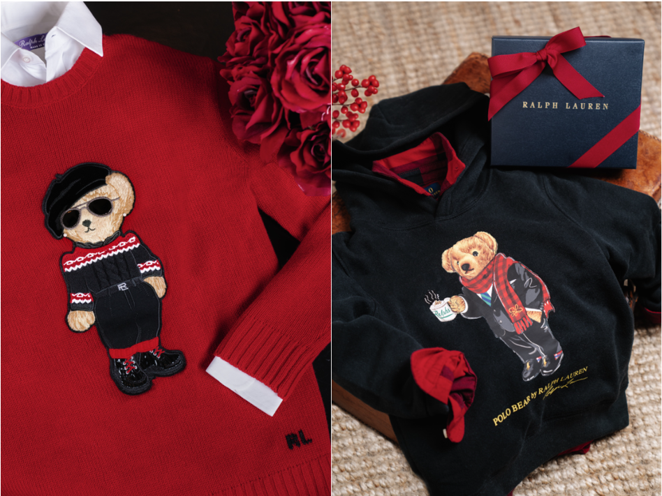 Nhắc đến Tết, không thể không kể đến màu đỏ, chứa đựng ý nghĩa của sự thịnh vượng, may mắn và quyền lực trong văn hóa phương Đông. Ralph Lauren tinh tế gửi gắm những điều tốt đẹp này vào các thiết kế, song hành cùng sắc đen bí ẩn, trang nhã tạo nên sự tương phản đầy thú vị qua mẫu áo hoodie làm từ lông cừu, nổi bật với hình ảnh chú gấu Polo, được tô điểm cùng logo Pony đặc trưng. Bên cạnh đó, chiếc áo len cổ tròn siêu mềm mại tôn vinh kỹ thuật đan intarsia tinh xảo với hình thêu Chú gấu Polo cầm cốc cà phê Ralph phủ kem tươi. Hình ảnh linh vật mang tính biểu tượng của nhãn hàng đang khoác lên người một bộ vest sành điệu, kết hợp với dép đi trong nhà Big Pony và một chiếc khăn choàng kẻ sọc, khơi gợi cảm giác hân hoan trong những khoảnh khắc cuối năm.