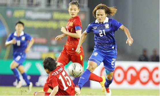 | Đội tuyển nữ Việt Nam gặp nhiều khó khăn trong trước lối chơi đeo bám của Thái Lan |