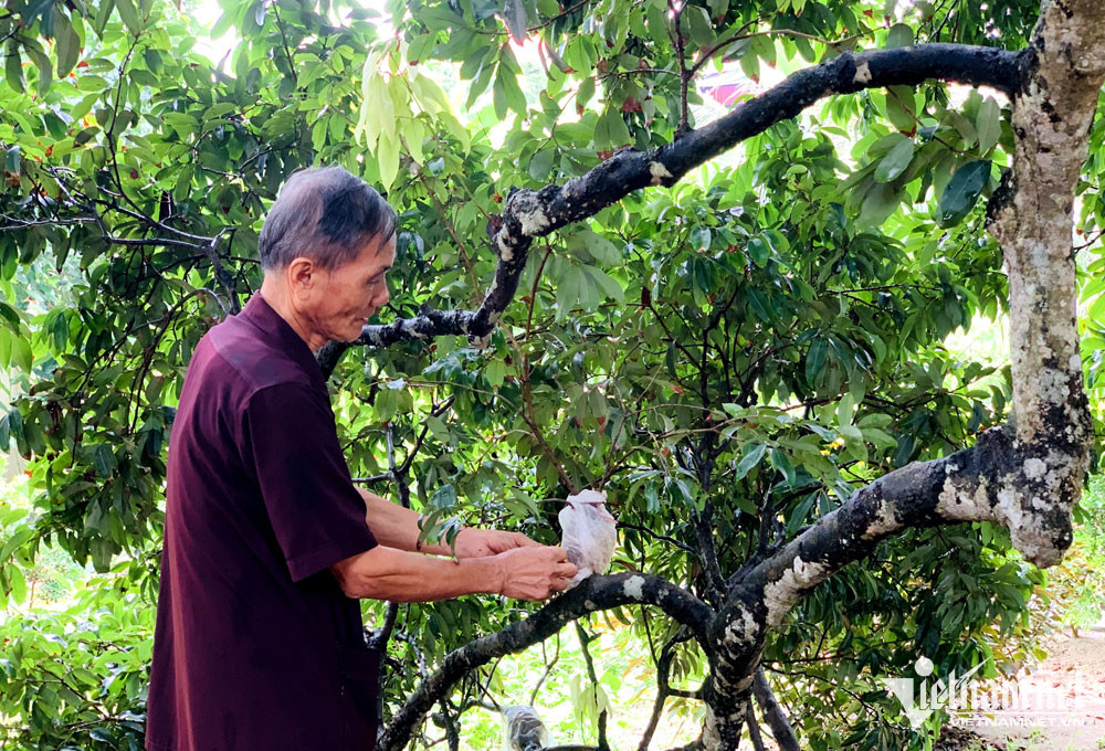 Gần 70 tuổi, ông Lượm chỉ trông coi vườn vải tổ của gia đình, còn con cháu vẫn theo nghề trồng vải thiều đến bây giờ.