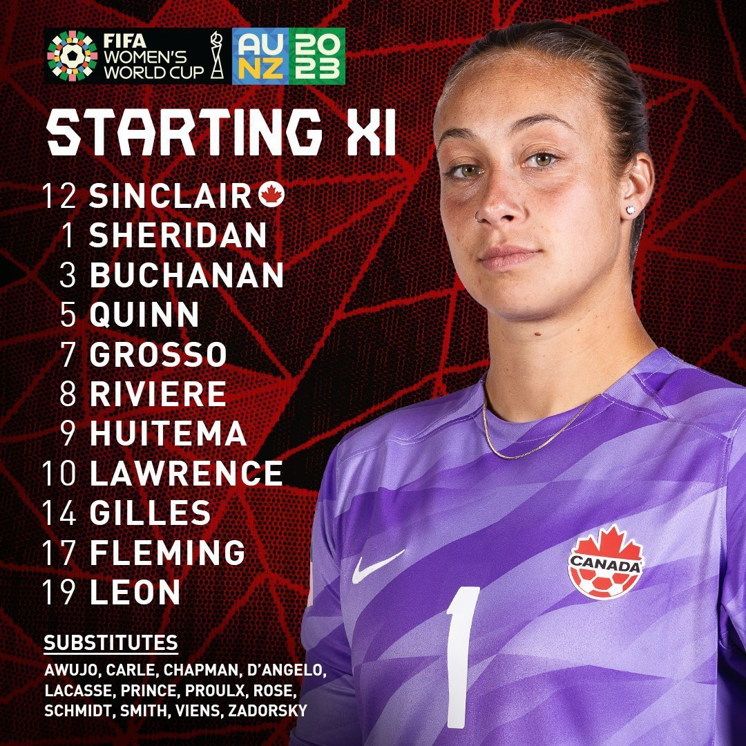ĐT nữ Canada: Sheridan; Riviere, Buchanan, Gilles, Lawrence; Fleming, Grosso; Quinn, Sinclair, Leon; Huitema.