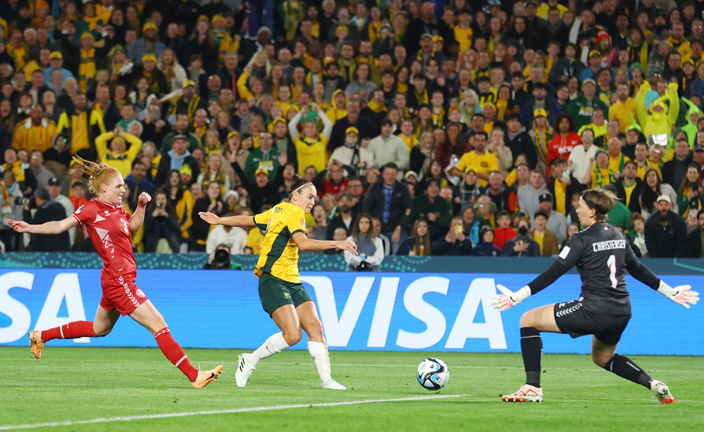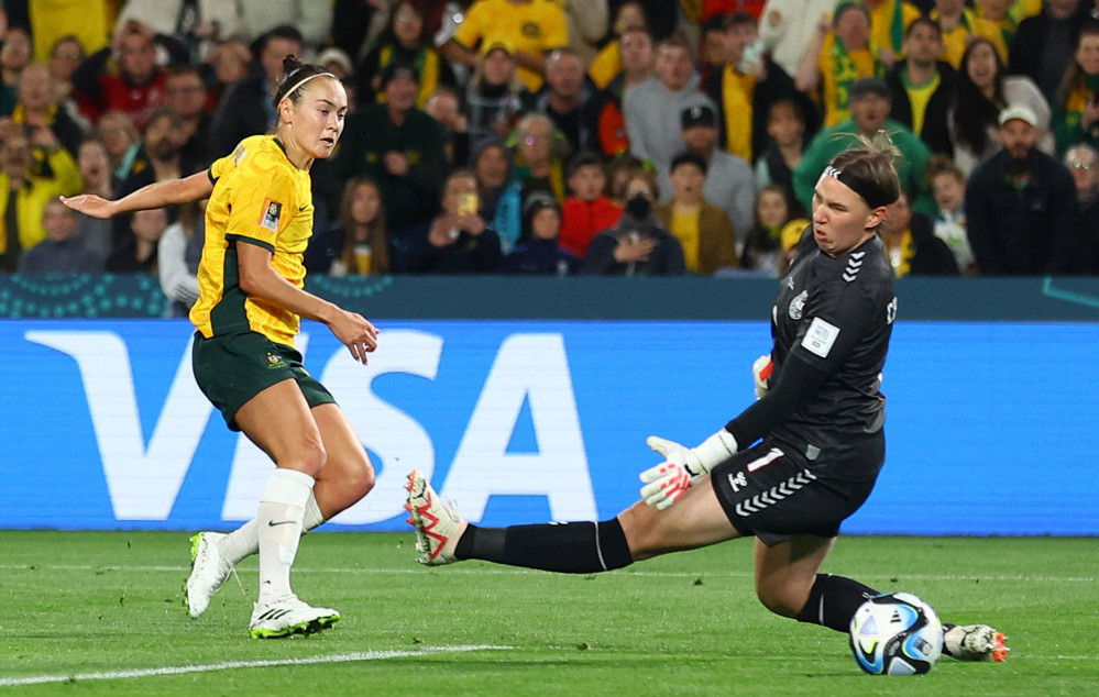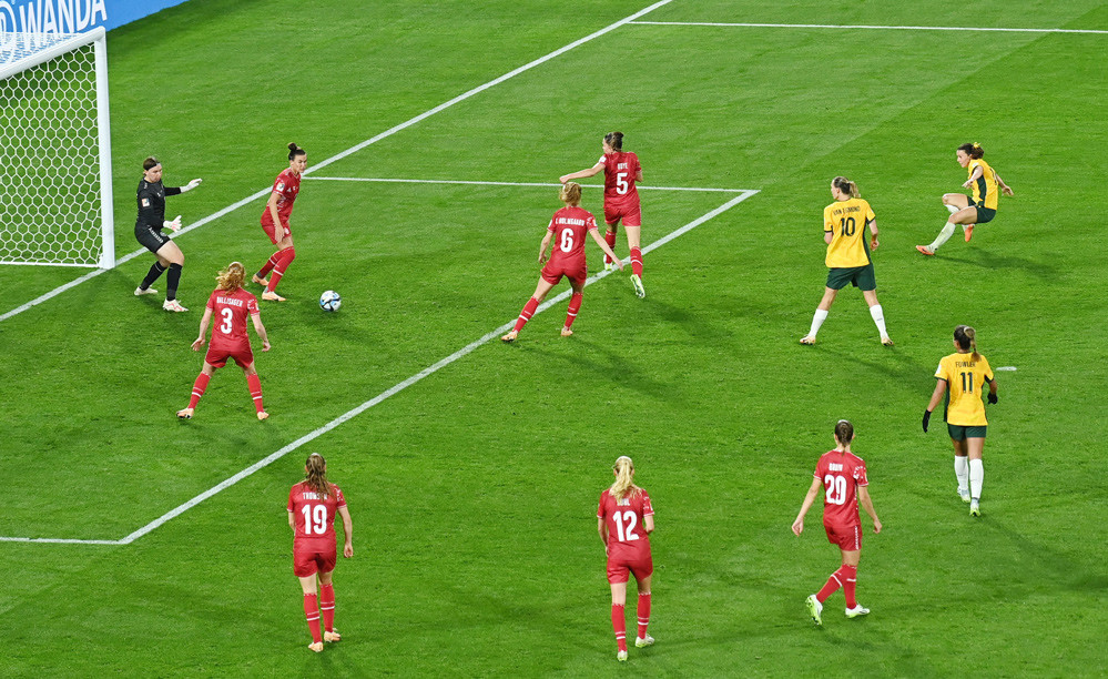 Nữ Australia đang kiểm soát bóng tốt hơn nhưng gặp khó trong việc tìm đường vào khung thành Đan Mạch.