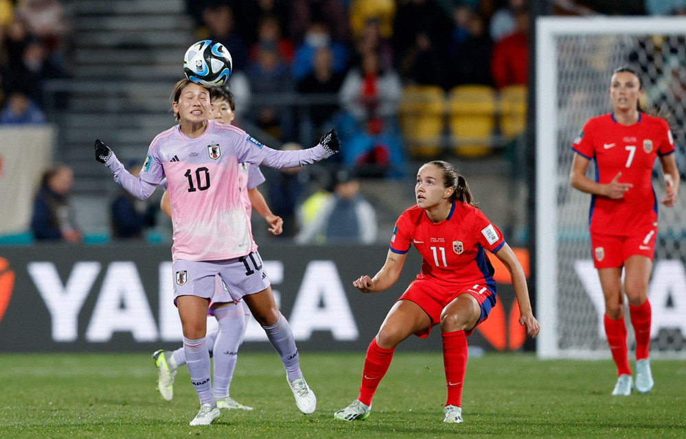 Đại diện châu Á vẫn đang thi đấu lấn lướt. Hậu vệ nữ Na Uy vừa có pha đánh đầu suýt đưa bóng về lưới nhà.