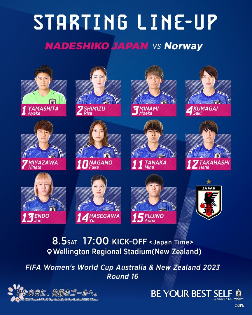 Nữ Nhật Bản (3-4-3): Yamashita; Takahashi, Kumagai, Minami; Shimizu, Fujino, Hasegawa, Endo; Miyazawa, Nagano, Tanaka.