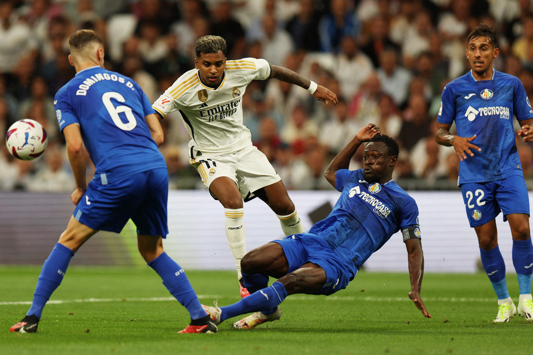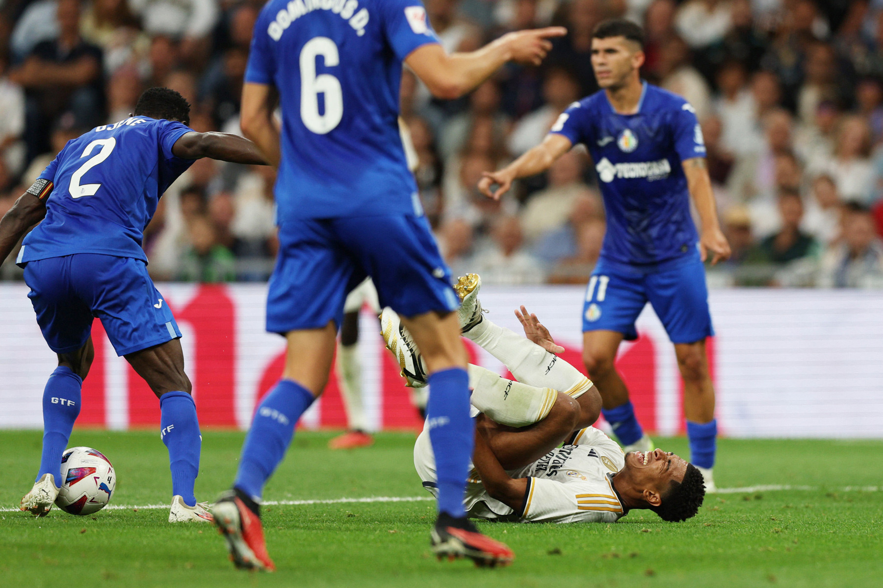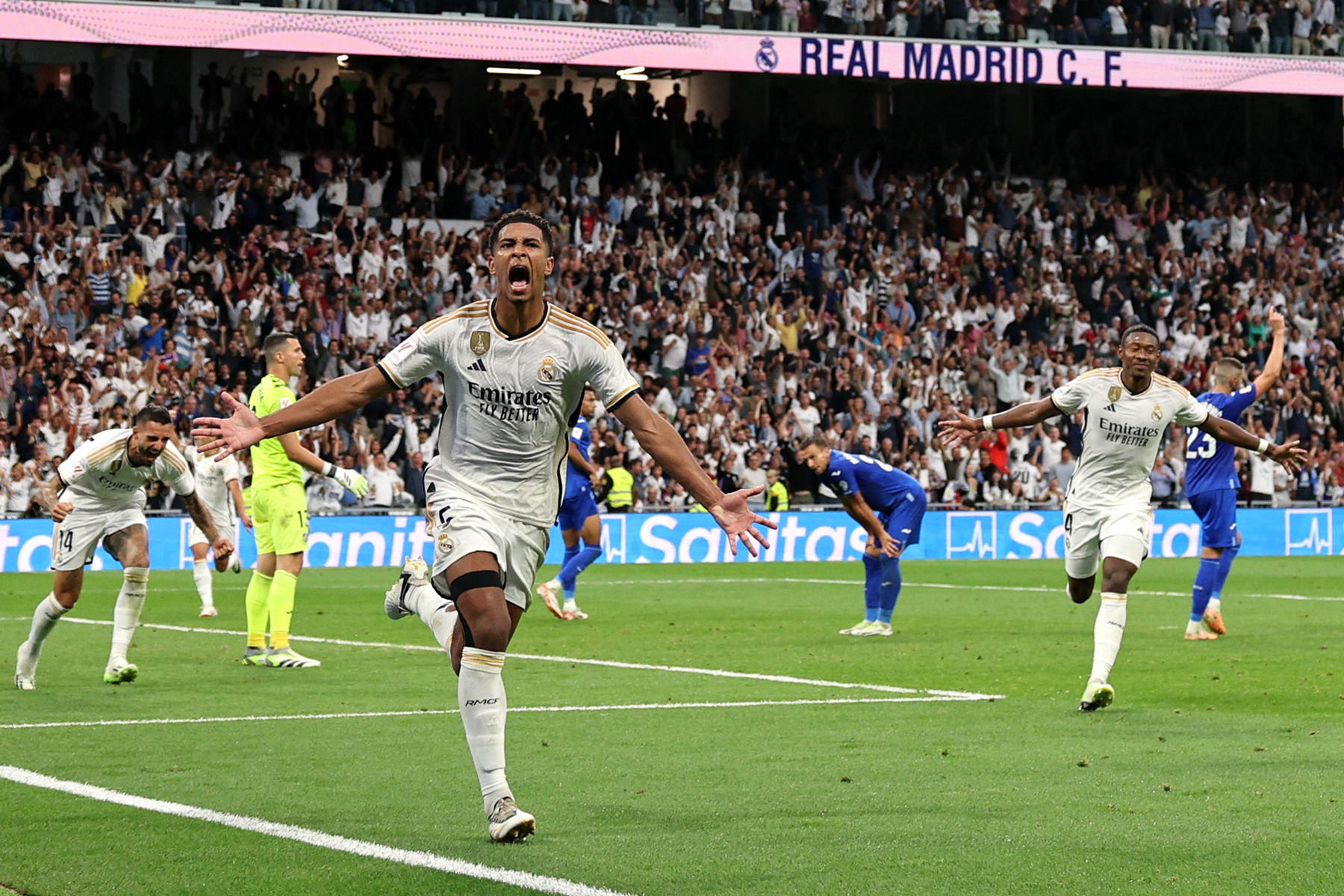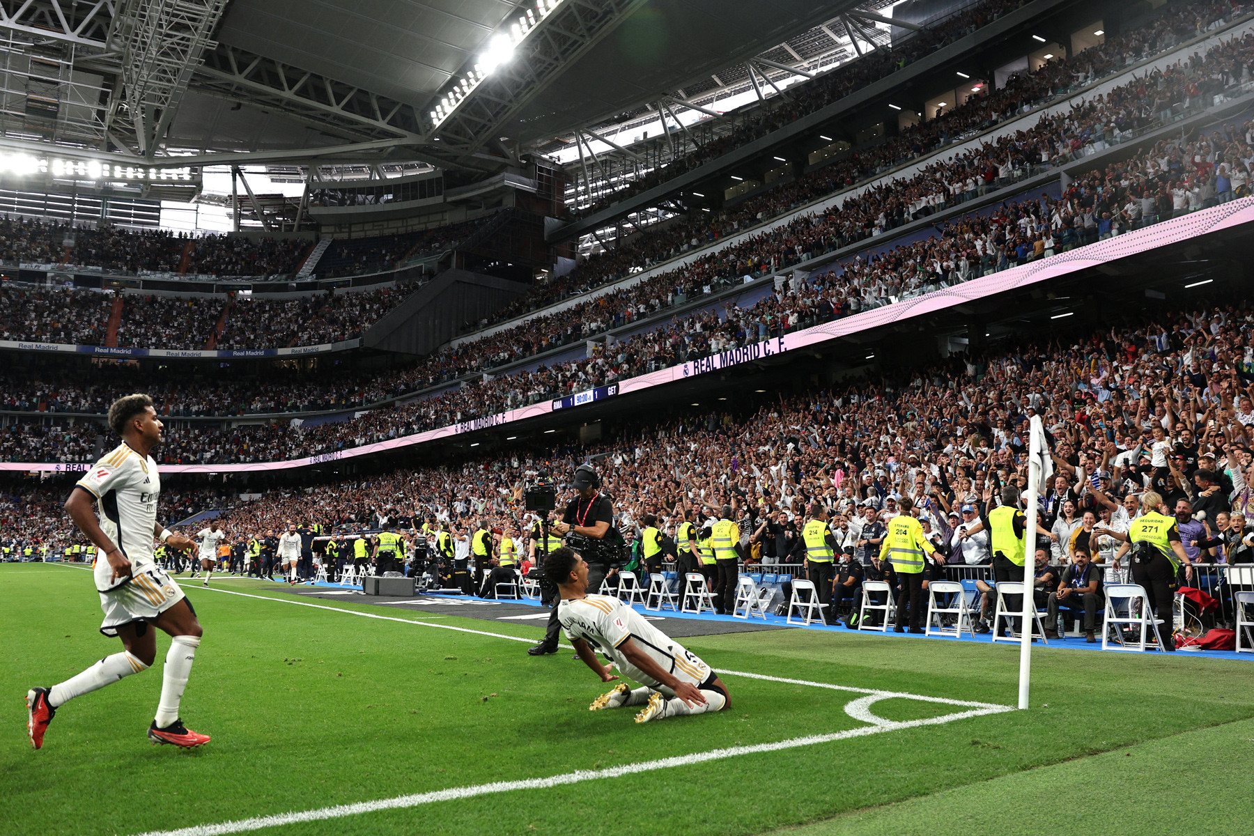 Trong thời gian bù giờ, Soria bất ngờ mắc sai lầm để bóng ộc ra sau cú sút xa của Lucas Vazquez. Bellingham không bỏ lỡ cơ hội ghi tên mình lên bảng điểm.