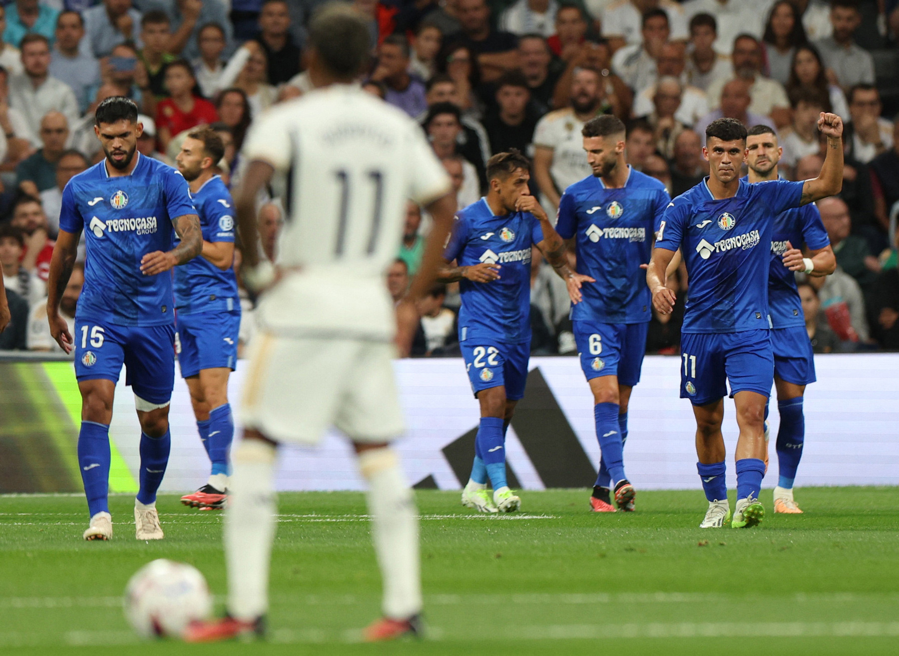 Sai lầm của cầu thủ trẻ Fran Garcia khiến đội chủ nhà thủng lưới sớm trong lần ra mắt sân Bernabeu mới. Các cầu thủ Real Madrid tấn công dồn dập tìm bàn gỡ nhưng chưa thành.