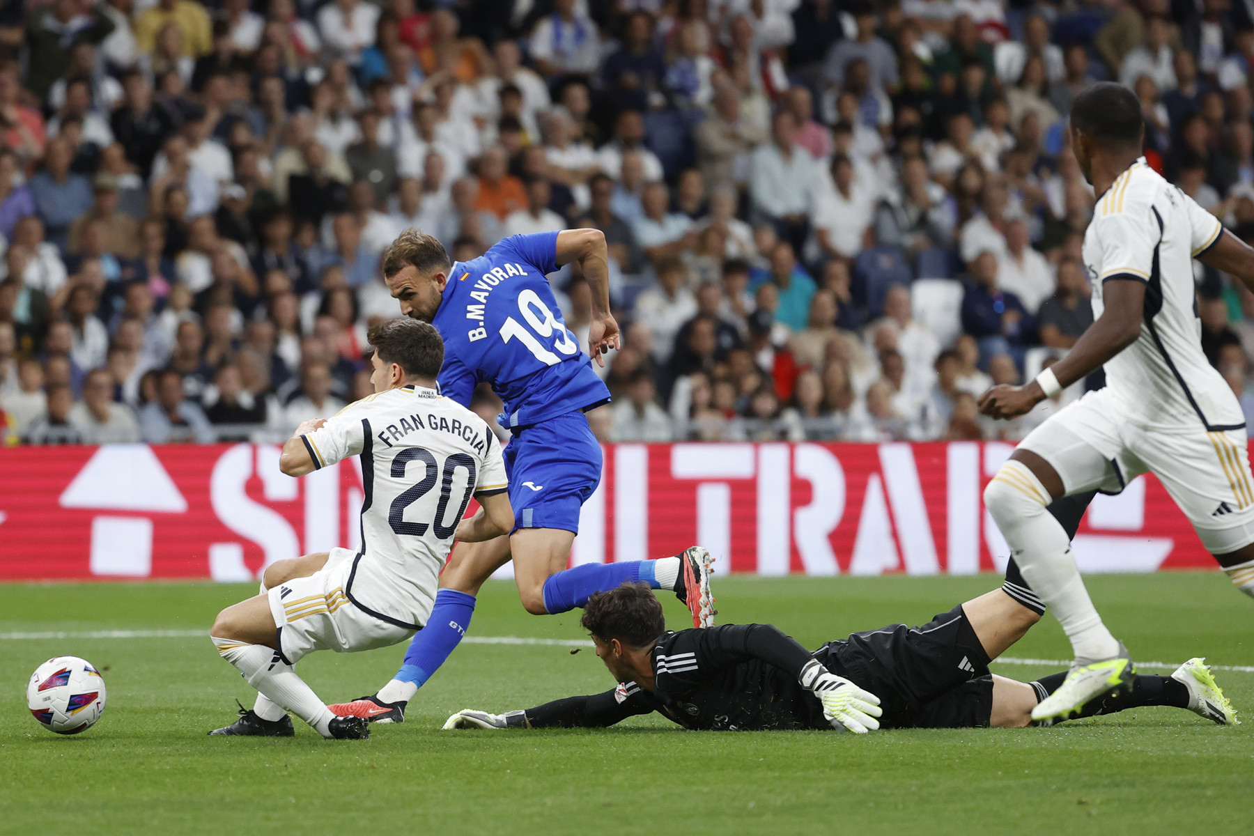 Trận đấu sớm đi theo hướng trái ngược với sự chờ đợi của các Madridista. Sai lầm của cầu thủ trẻ Fran Garcia khiến người cũ Borja Mayoral trừng phạt đội chủ nhà ghi bàn mở tỷ số ngay phút 11.