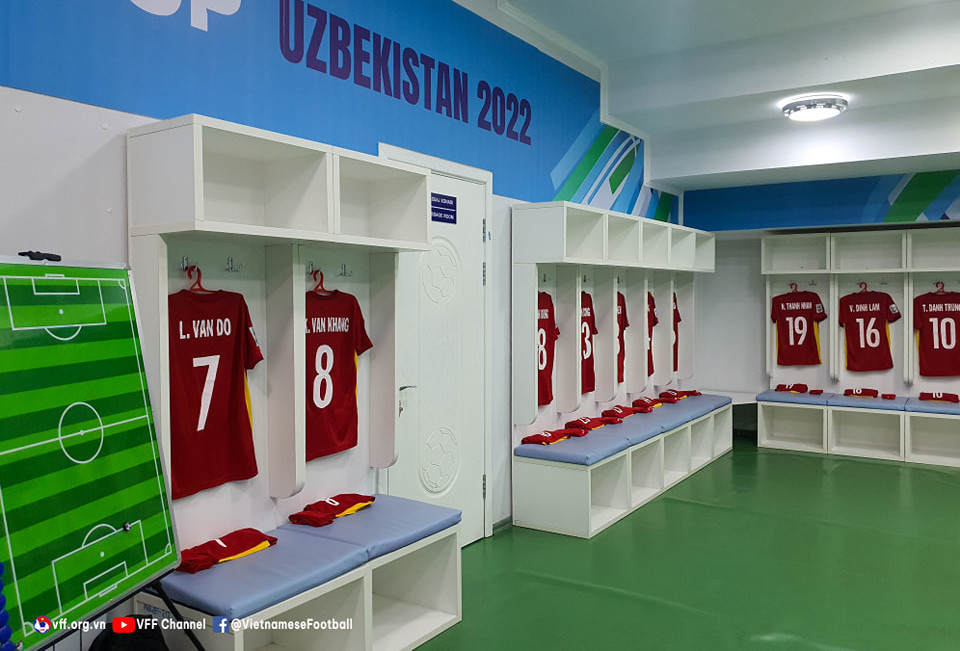 Phòng thay đồ U23 Việt Nam trước trận đấu.
