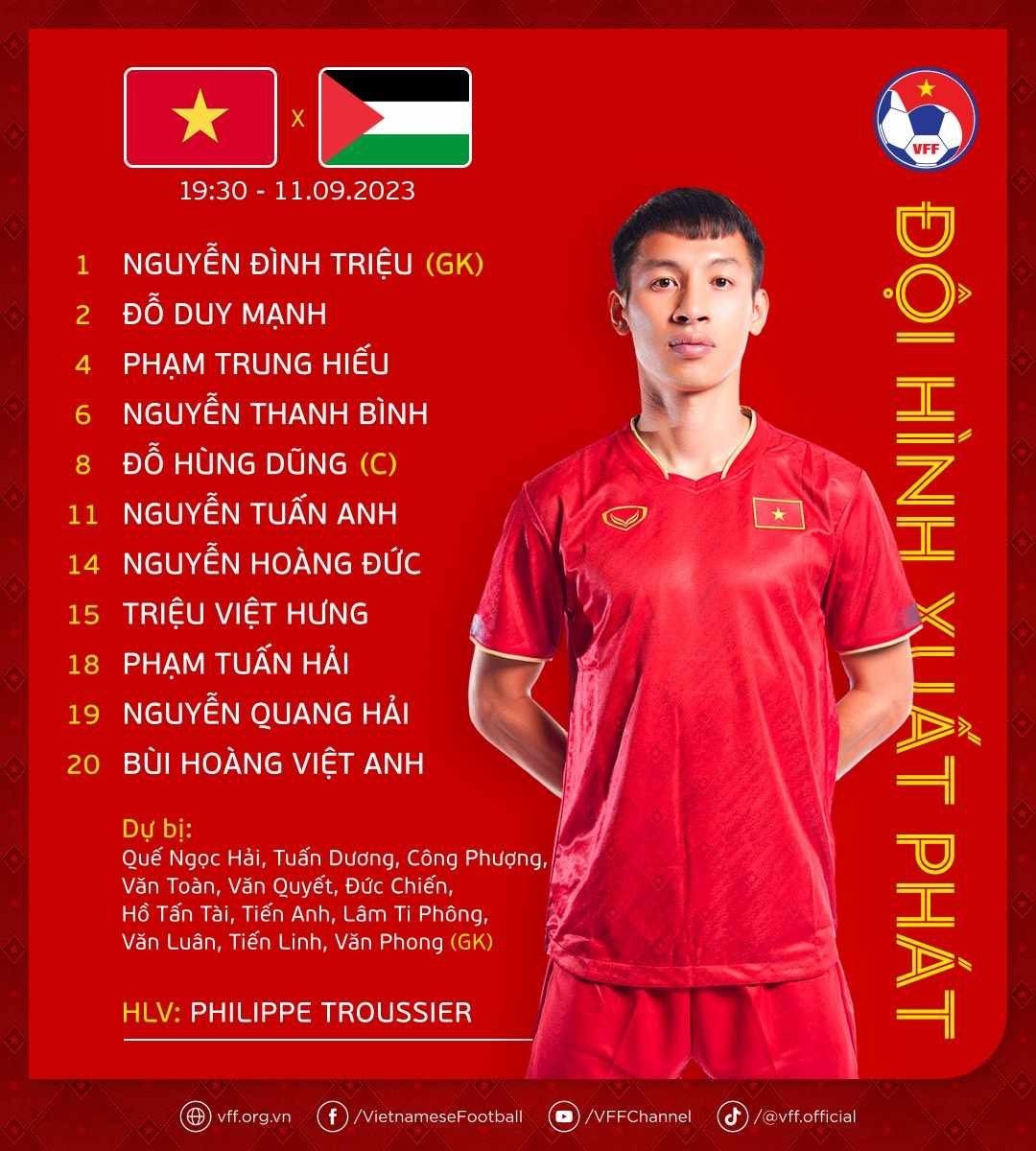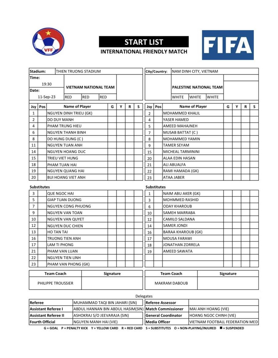 Danh sách tuyển Việt Nam chuẩn bị cho trận giao hữu với Palestine